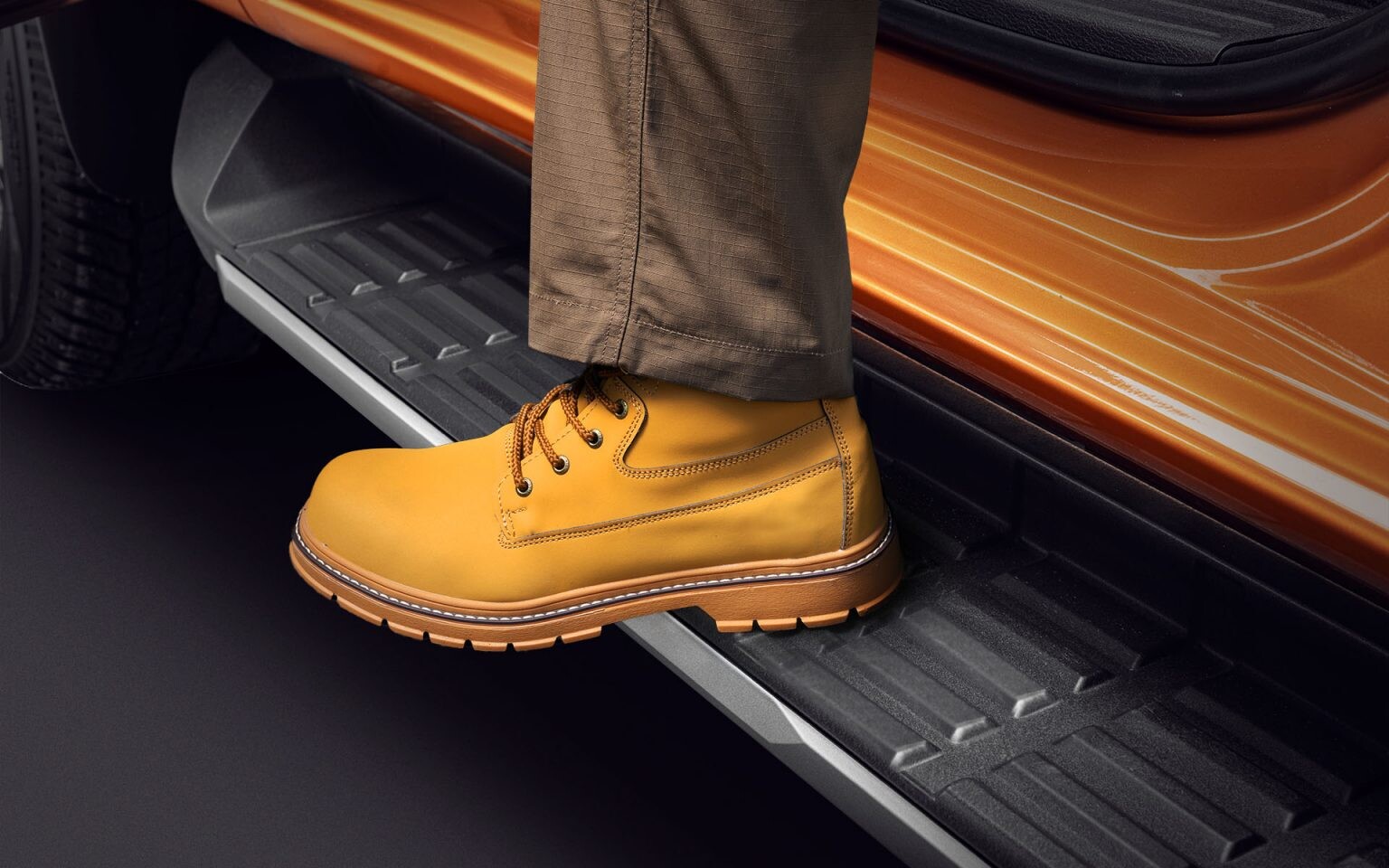 Chiều cao mặt thùng chỉ 821 mm và bệ bước chân hai bên thùng xe rộng rãi, chống trơn trượt giúp cho việc lên xuống và xếp dỡ hàng hóa vào thùng xe tiện lợi và an toàn.