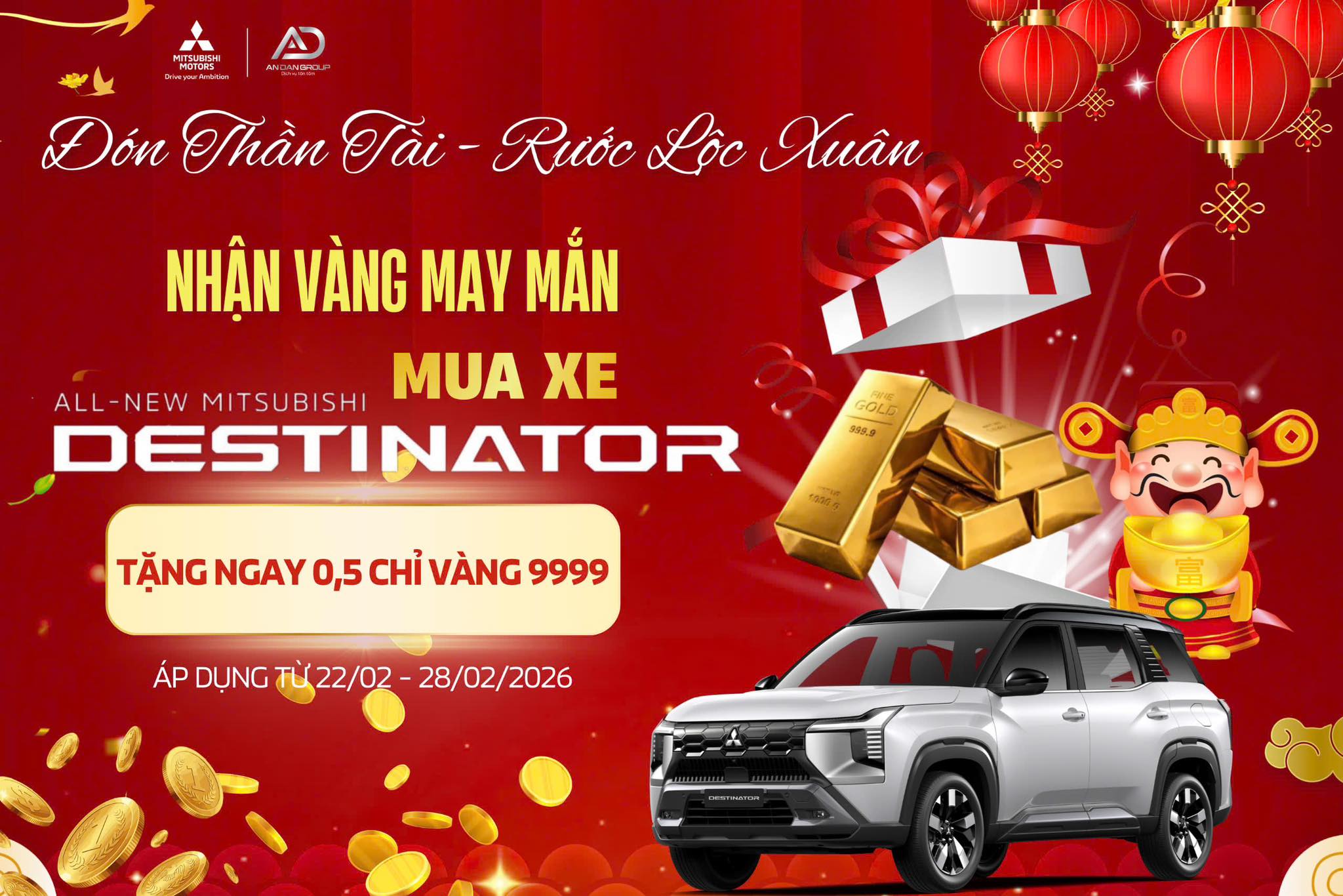 ĐÓN THẦN TÀI RƯỚC LỘC XUÂN 2026 NHẬN VÀNG MAY MẮN MUA XE MITSUBISHI DESTINATOR