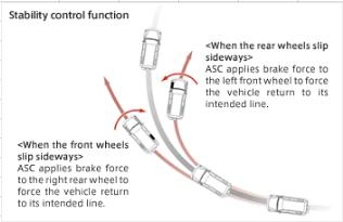 ASC (Active Stability Control) giúp người lái duy trì khả năng điều khiển xe trong các điều kiện thời tiết bất lợi và những tình huống khẩn cấp.