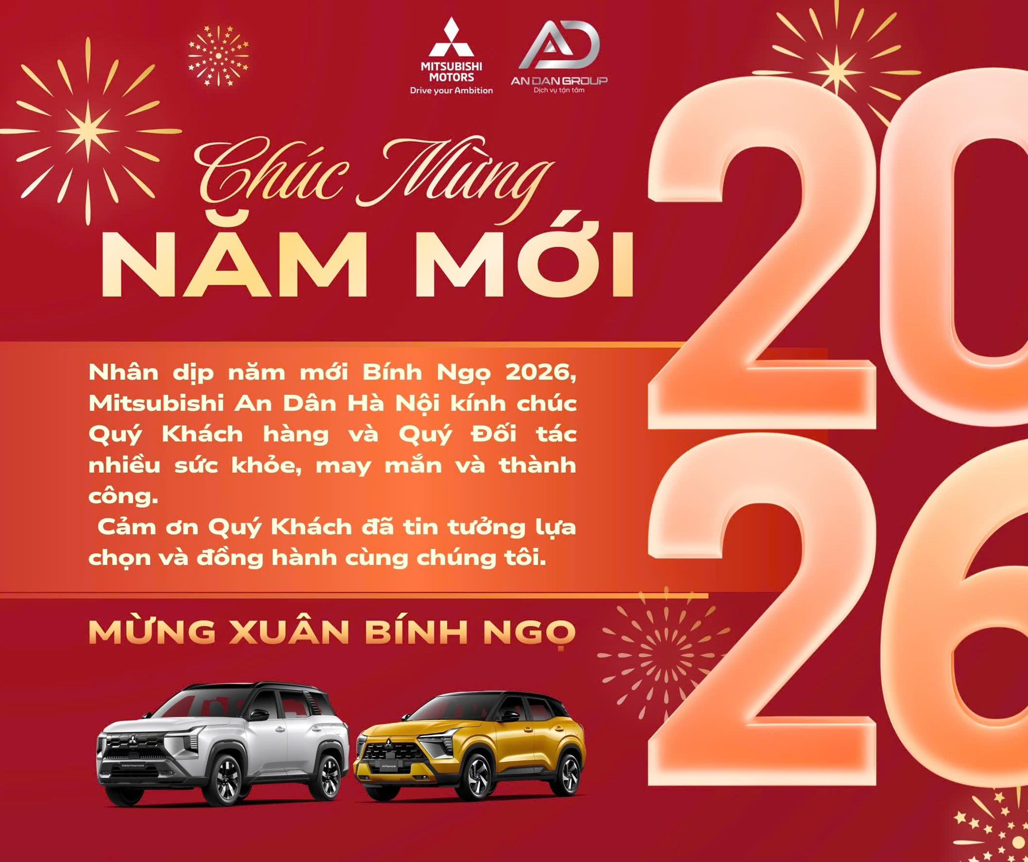 Nhân dịp năm mới 2026, Mitsubishi An Dân Long Biên trân trọng gửi đến Quý Khách hàng, Quý Đối tác cùng gia đình lời chúc: