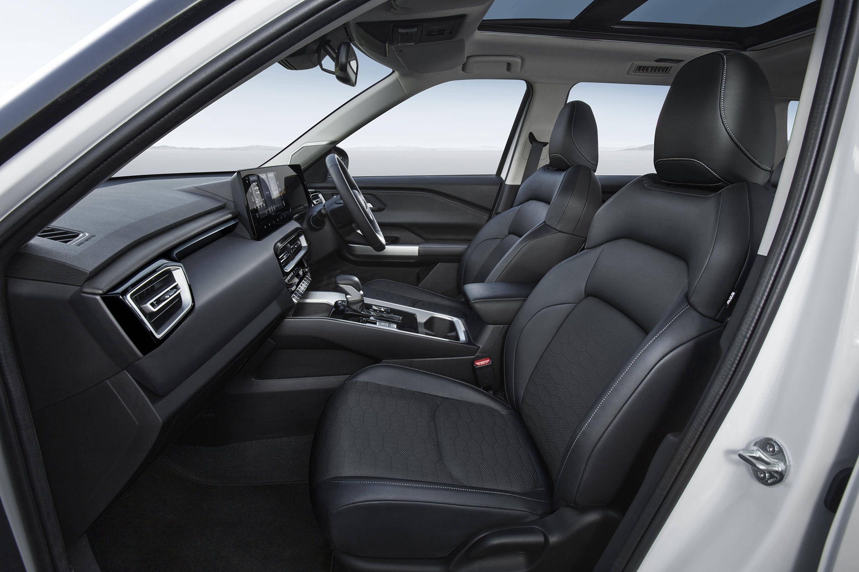 Bảng điều khiển trung tâm tích hợp màn hình giải trí kích thước 12.3 inch và màn hình thông tin kỹ thuật số 8-inch dành cho người lái, tạo thành một cụm màn hình liền khối. Màn hình giải trí kích thước lớn 12.3 inch không chỉ hiện đại mà còn nâng cao trải nghiệm lái, hiển thị nội dung đa dạng và trực quan bao gồm giao diện đồng hồ đa chức năng lấy cảm hứng từ cụm ba đồng hồ biểu tượng của mẫu xe Pajero huyền thoại. Màn hình cũng cung cấp quyền truy cập vào các tính năng như cửa sổ trời toàn cảnh chỉnh điện, hệ thống đèn viền nội thất và kết nối các thiết bị khác.