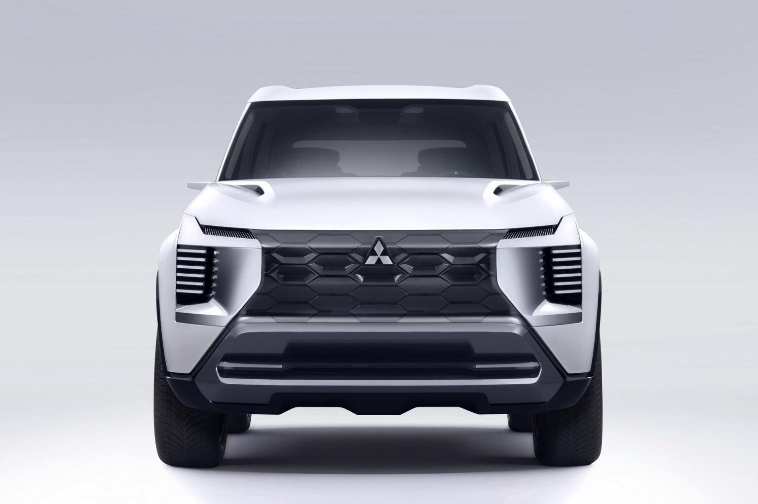 Ngôn ngữ thiết kế Dynamic Shield, biểu tượng đặc trưng của Mitsubishi Motors, kết hợp hài hòa giữa hiệu năng vận hành và khả năng bảo vệ, mang đến vẻ ngoài nổi bật và lịch lãm cho DST Concept. Lưới tản nhiệt phía trước với họa tiết lưới tổ ong ba chiều, được tích hợp với các ốp bảo vệ, tạo nên một diện mạo tân tiến, sang trọng và đầy uy lực. Cụm đèn chiếu sáng trước sau LED hình chữ T giúp tăng cường khả năng nhận diện và nhấn mạnh dáng vẻ bề thế đặc trưng. Nắp capo với các đường gân dập nổi và khe hút gió tạo cảm giác khí động học, càng làm tăng thêm diện mạo oai vệ nổi bật của xe.