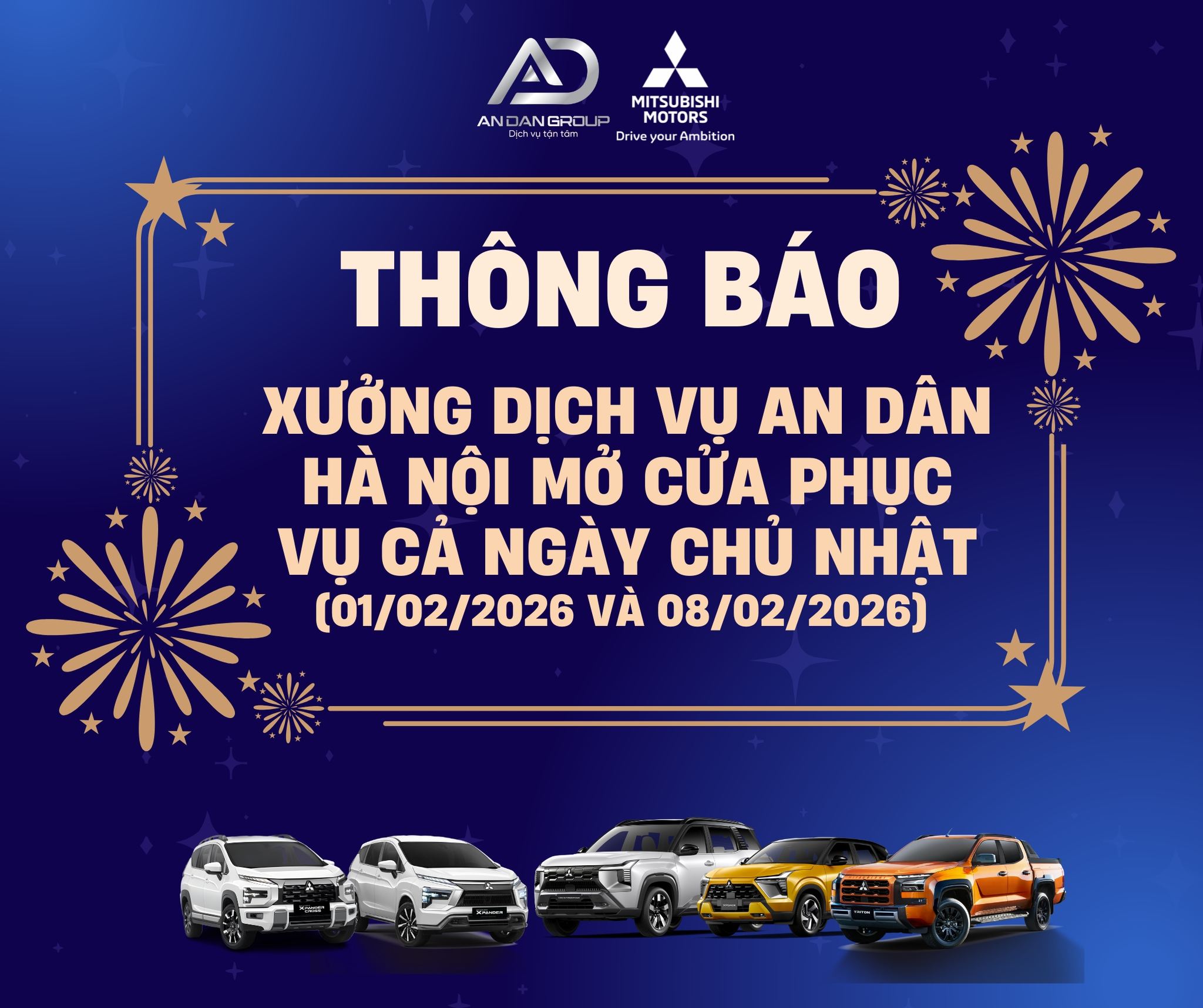 THÔNG BÁO XƯỞNG DỊCH VỤ MITSUBISHI LONG BIÊN MỞ CỬA CẢ NGÀY CHỦ NHẬT (01/02 ~ 08/02/2026)