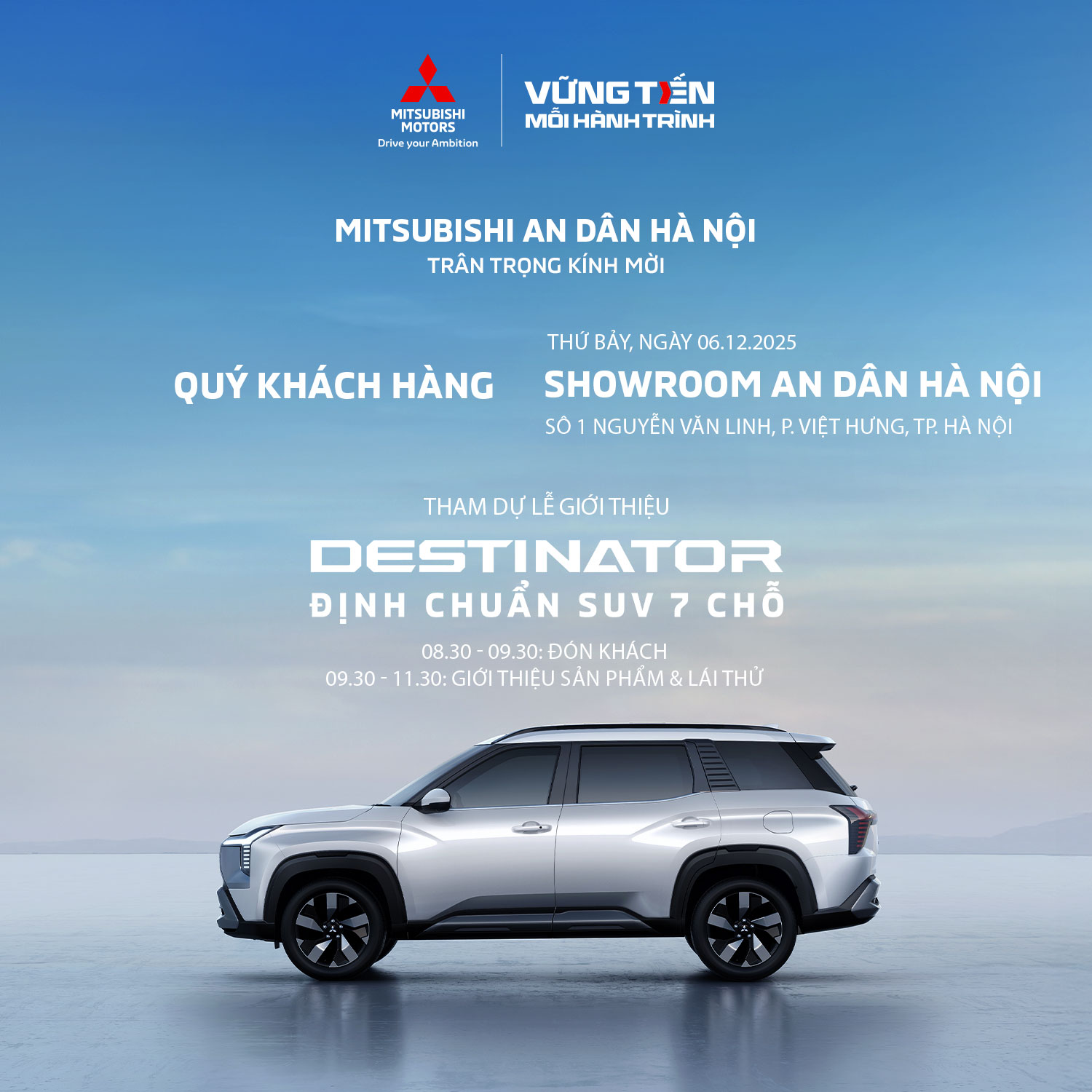 THƯ MỜI THAM DỰ LỄ GIỚI THIỆU ALL NEW MITSUBISHI DESTINATOR NGÀY 06/12/2025 TẠI SHOWROOM MITSUBISHI AN DÂN LONG BIÊN HÀ NỘI ![]()